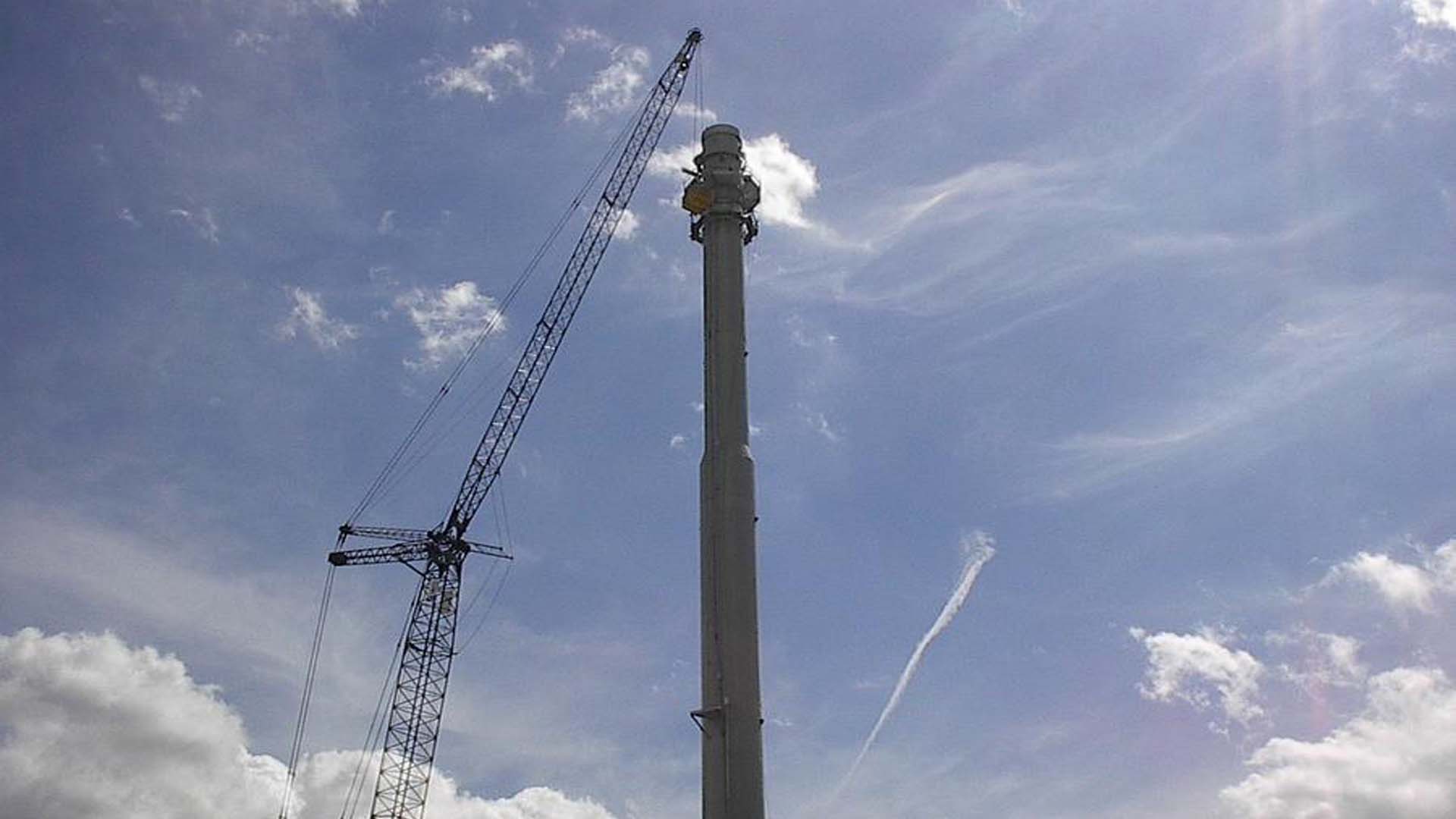 As a part of environmental improvement efforts, Cargill Fertilizer installed a 300′ tall odor stack at their facility south of Tampa, Florida.