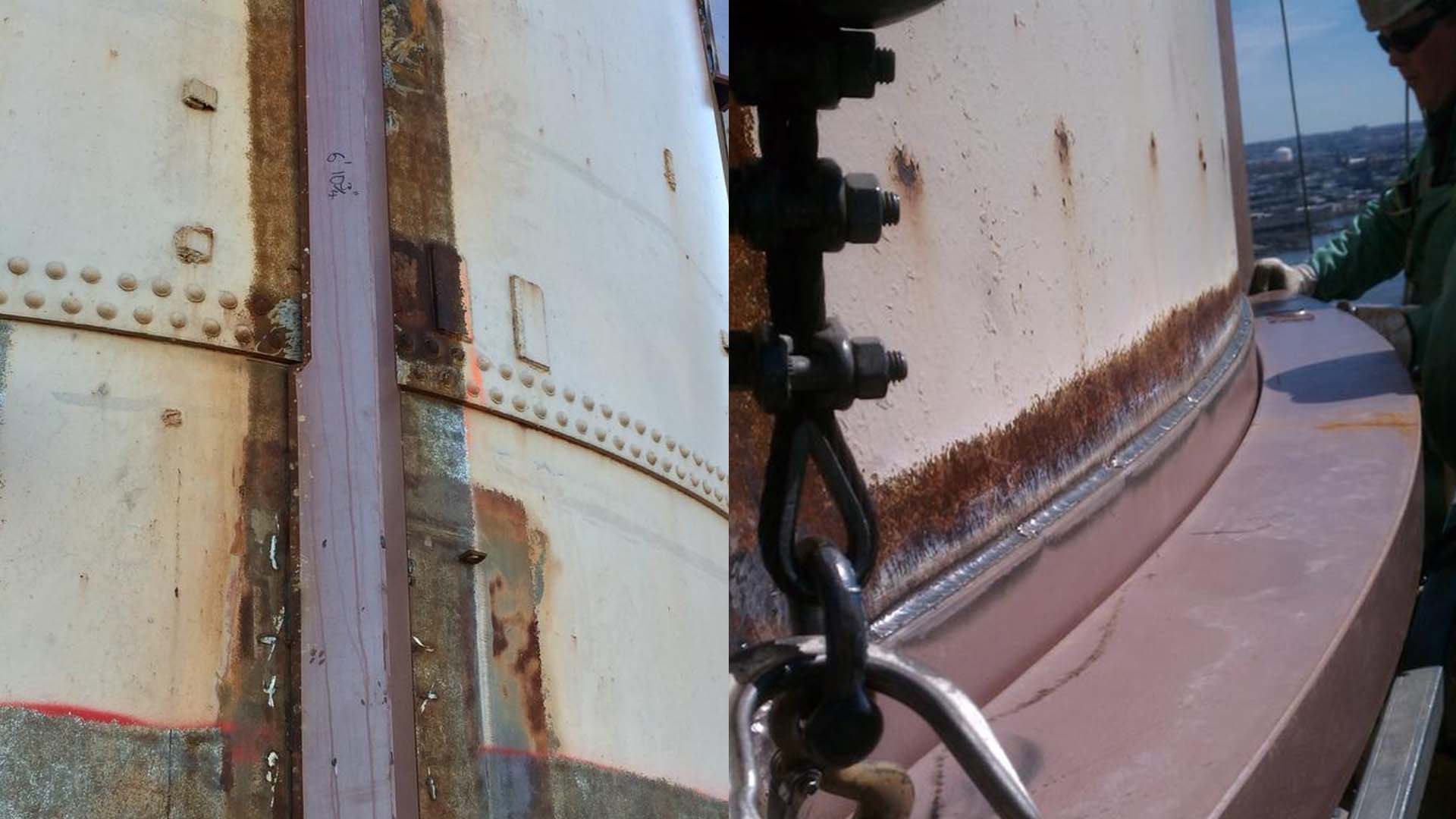 • Notching of vertical stiffener angles to accomodate overlapping riveted plate seams