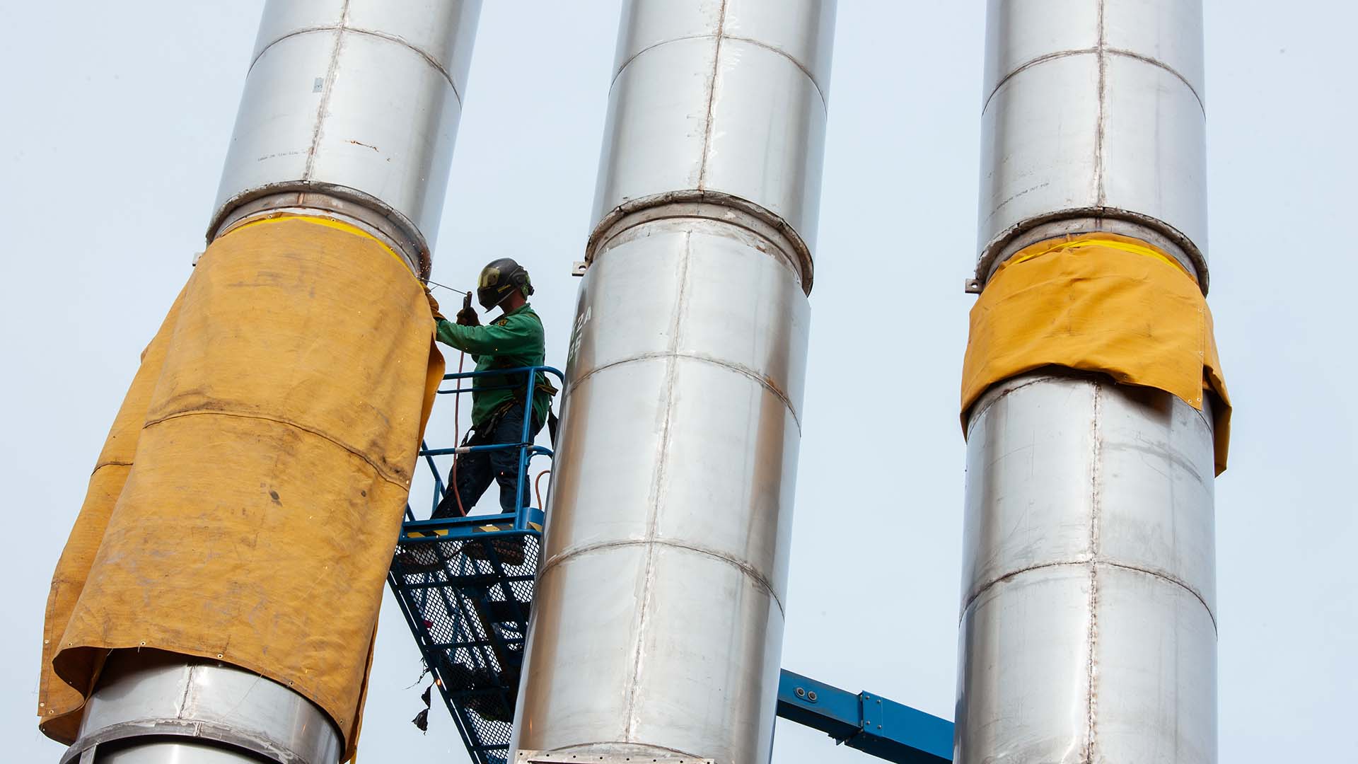 Jansons designed and installed three chimney/exhaust stacks prior to the construction of the building they serve. All three stacks were installed in one day.